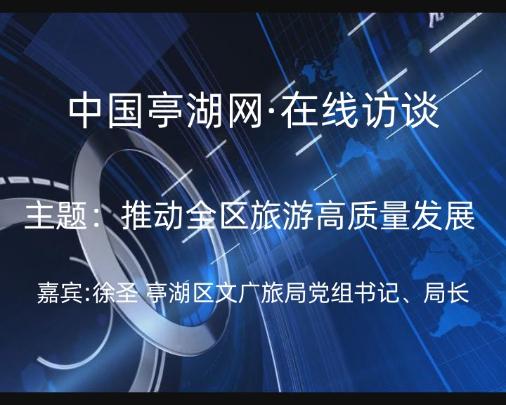 【主持人】各位网友,大家好!欢迎收看中国亭湖网《在线访谈》,这次访谈的主题是“推进全区旅游高质量发展”。今天我们很高兴地邀请到了亭湖区文广旅局党组书记、局长徐圣做客访谈,与大家畅谈如何推进我区旅游发展,擦亮“亭湖文旅”品牌。欢迎徐局长!