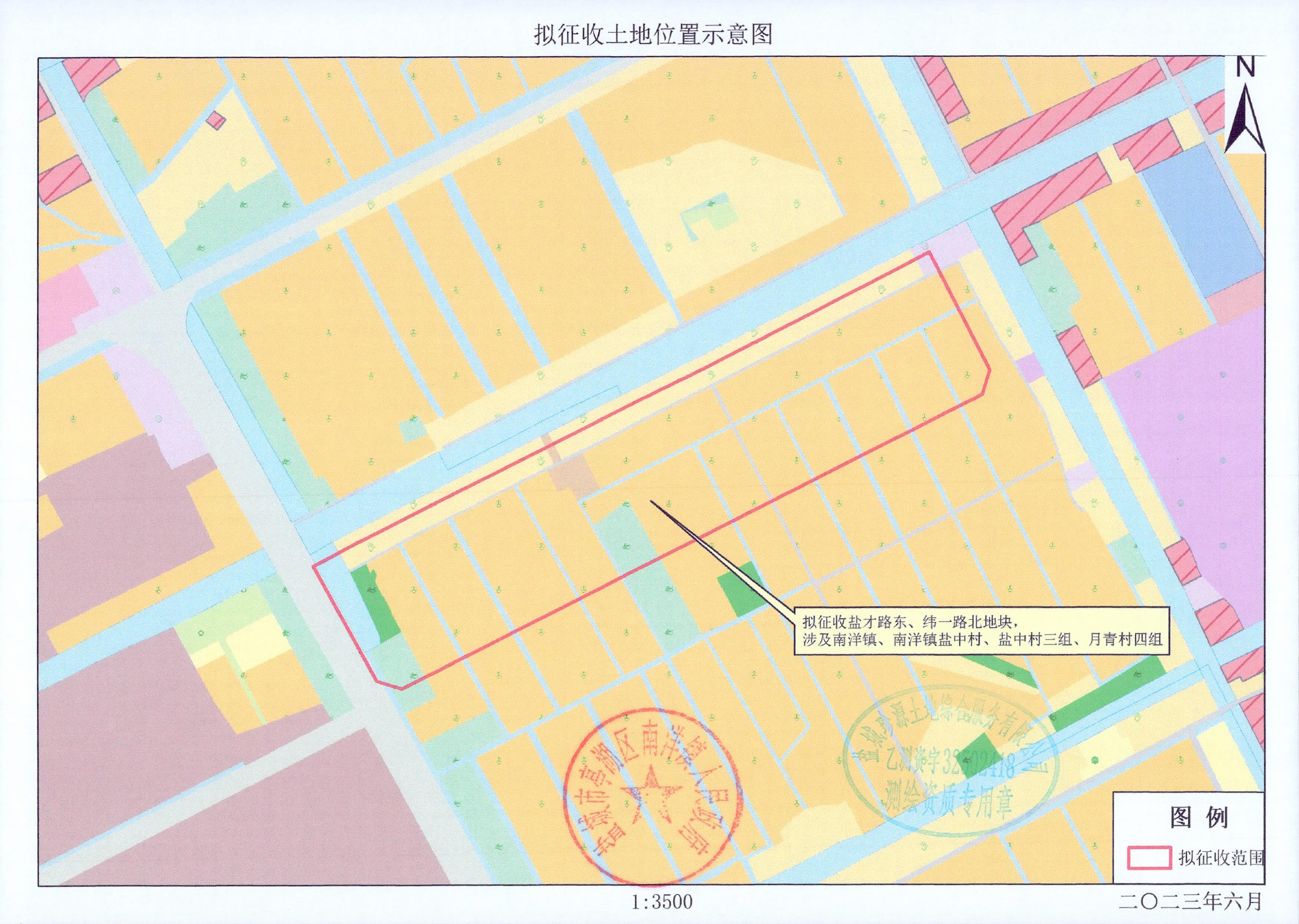 本次拟征收土地位于南洋镇、南洋镇盐中村、盐中村三组,月青村四组范围内。拟征收土地位置详见附图。
