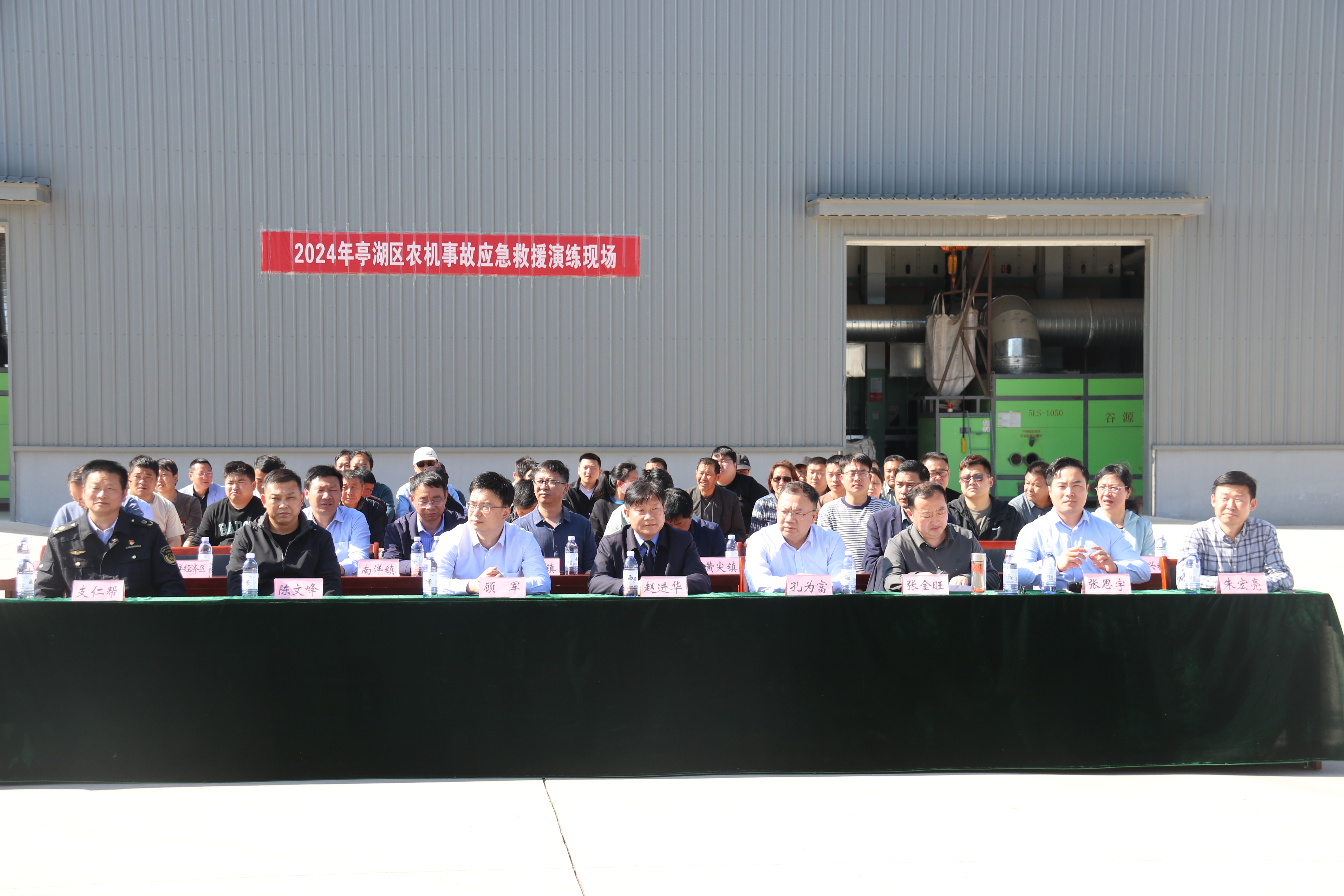 4月26日下午,亭湖区在新兴镇倪杰村亭兴粮食综合农事服务中心成功举办了2024年农机事故应急救援演练暨特色农业机械化示范基地观摩活动。盐城市农业综合行政执法监督局副局长赵进华现场指导,区农业农村局、区应急管理局、新兴镇分管领导、职能科室负责人和各镇(涉农街道)农业农村局负责人、具体负责人、农机大户、村组干部代表,合计40余人参加活动。