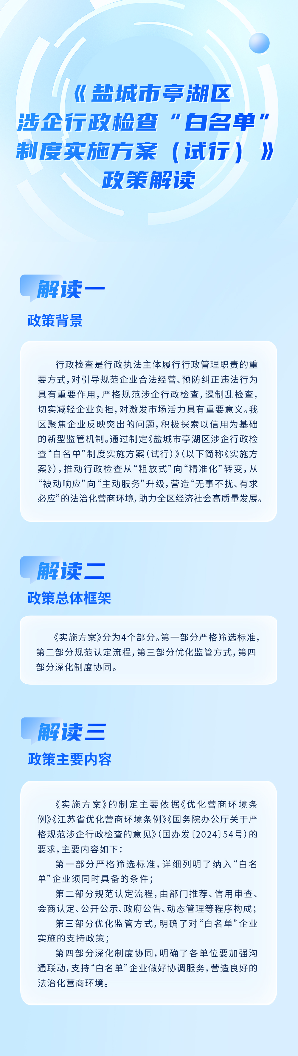 《盐城市亭湖区涉企行政检查“白名单”制度实施方案(试行)》政策解读