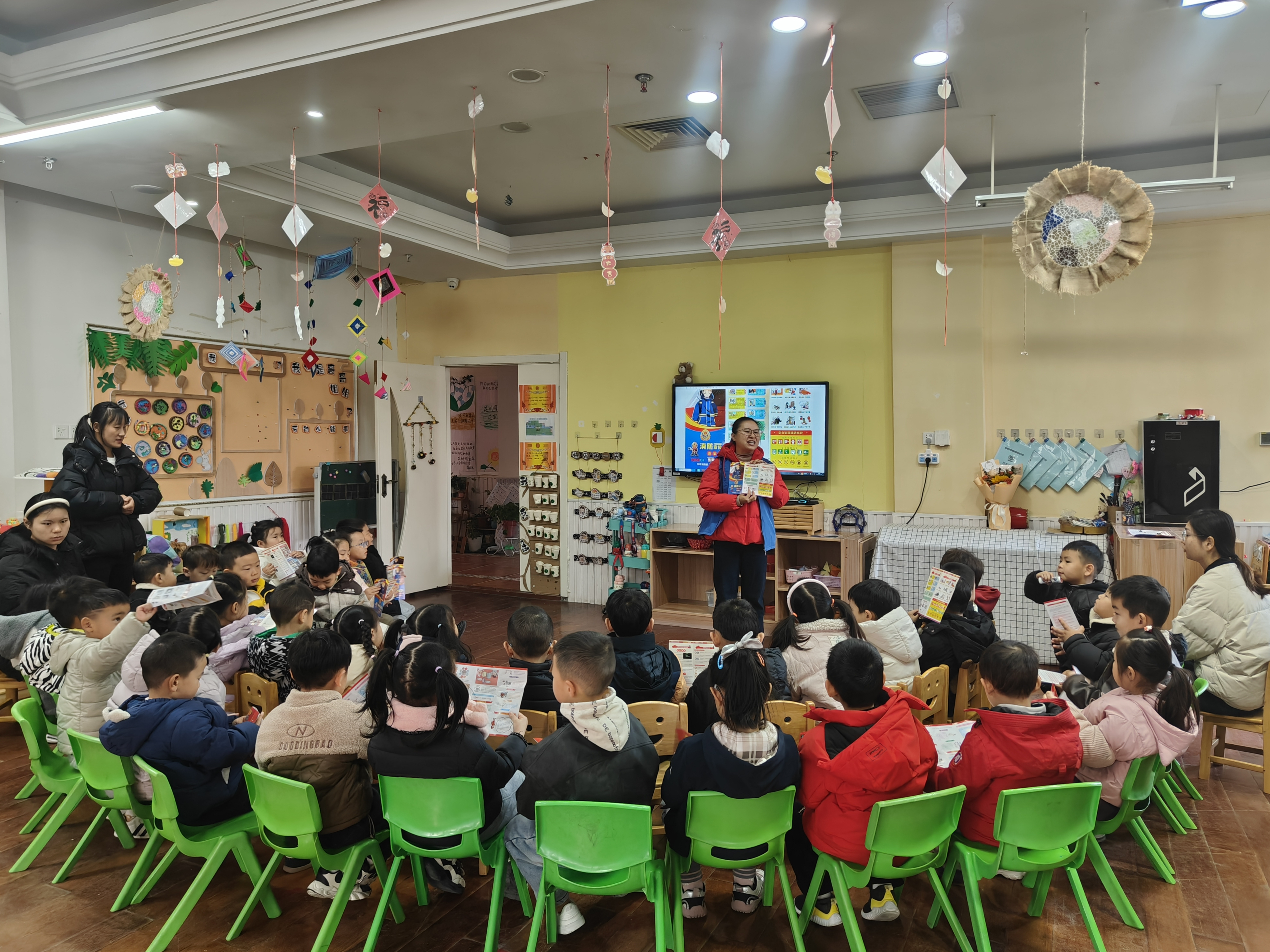 近日,东亭湖街道新丰社区新时代文明实践站、网格中心联合朗地幼儿园,开展“安全知识进校园·童趣课堂护成长”主题活动。社区网格员化身“安全老师”,通过图文手册、生动故事和趣味提问,将交通、防拐骗、消防等安全知识编成易懂的儿歌与情景问答,让孩子们在互动中学会自我保护。