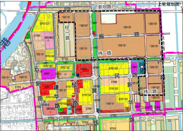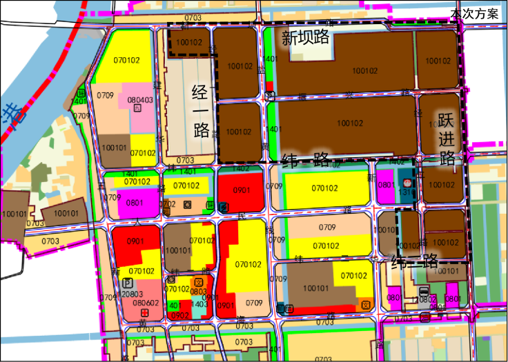 规划对新坝路南,经一路--经二路以东、纬一路--纬二路以北、跃进路以西的一类工业用地调整为二类工业用地,调整涉及二类工业用地面积为35.47公顷。