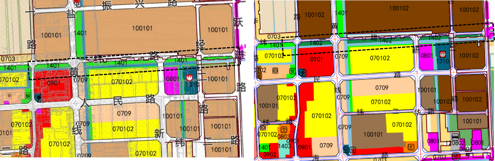 城镇开发边界内规划用地对比表