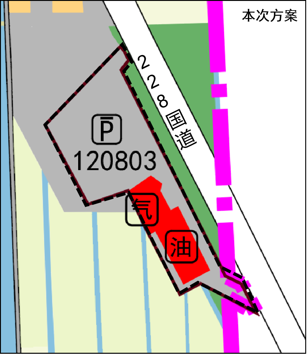 拟对部分社会停车场用地进行布局调整,将其用于加气站建设,此次调整涉及增加加油加气站用地面积0.13公顷(1294㎡)。