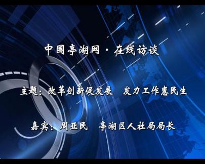 [主持人] 各位网友,大家好,我是主持人王勇,欢迎您收看中国亭湖网在线访谈。就业、养老等民生话题一直是网友关注的热点,今天我们就为大家邀请到了亭湖区人社局周亚民局长与我们在线交流,欢迎周局长。